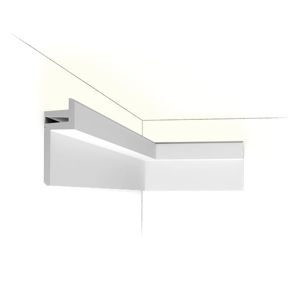 profil oświetleniowy LED, gzyms do oświetlenia pośredniego, Orac Decor C382, liniowe oświetlenie LED, nowoczesne oświetlenie, dekoracja wnętrz, odporność na wodę, łatwa instalacja, malowanie, Purotouch, profil L3.
